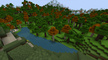 The forest biome has been changed to have taller trees so that players don't bump their heads on leaves while running and riding horses. Eucalyptus trees have been replaced with aspen trees, with orange leaves. This gives the biome a unique aesthetic by showcasing the color orange in the landscape.