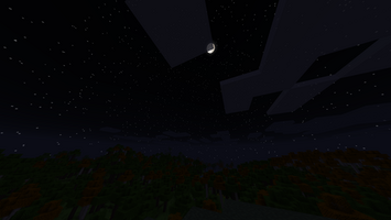 The game's sky has been redesigned, with new textures added for the sun and moon. There are now many more stars, and the sky colors have changed to a darker blue (leaning more toward blue/purple than cyan). The sunset color is now orange instead of a light yellow.
